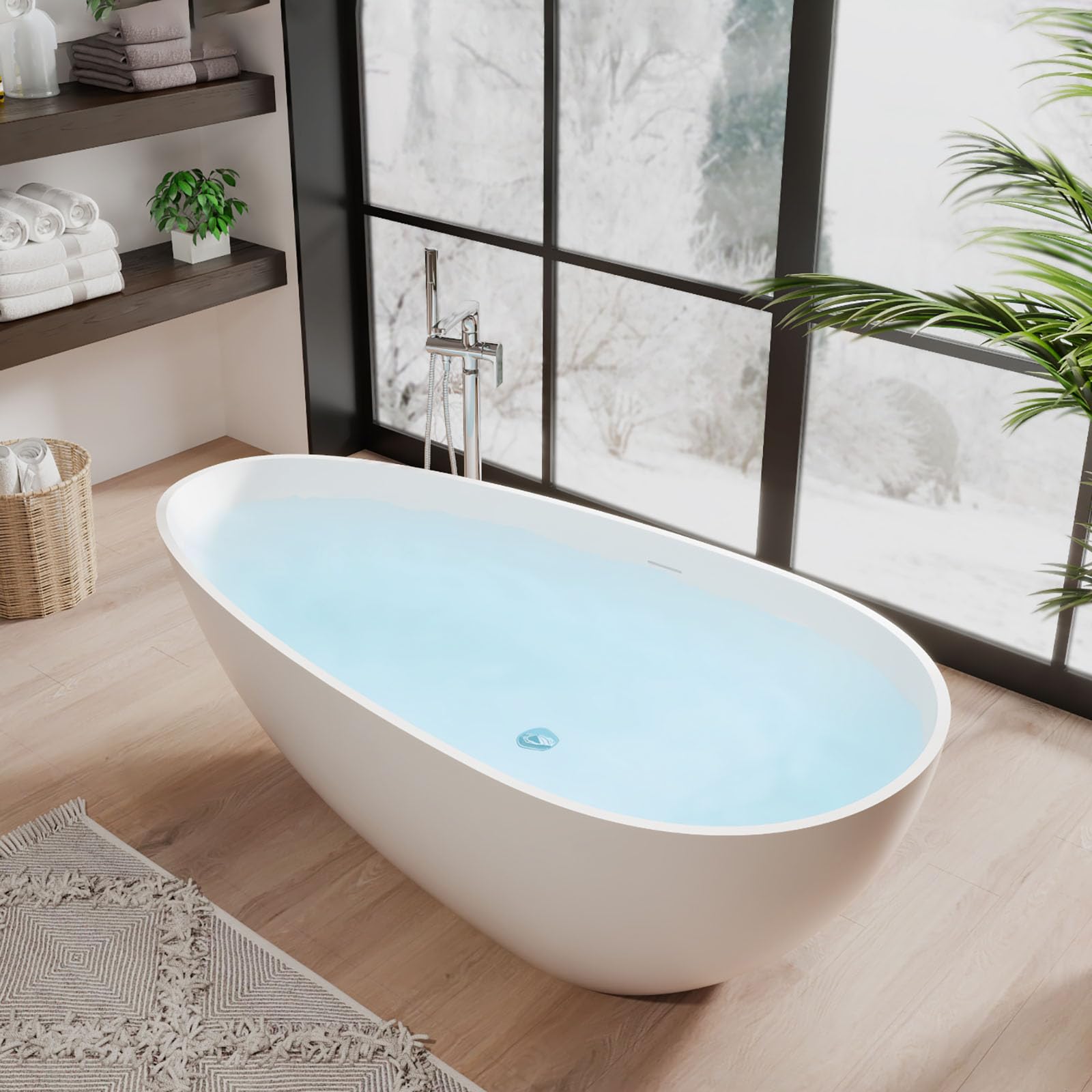 - Đá nhân tạo: Đây là chất liệu cao cấp nhất trong các dòng bồn tắm Oval hiện nay. Đá nhân tạo mang lại vẻ đẹp sang trọng, liền khối và không có mối nối, giúp nâng tầm không gian phòng tắm. Bồn tắm Oval từ đá nhân tạo có độ bền cao, chống trầy xước tốt và giữ nhiệt hiệu quả. Tuy nhiên, chi phí đầu tư ban đầu khá cao, phù hợp với các công trình cao cấp.