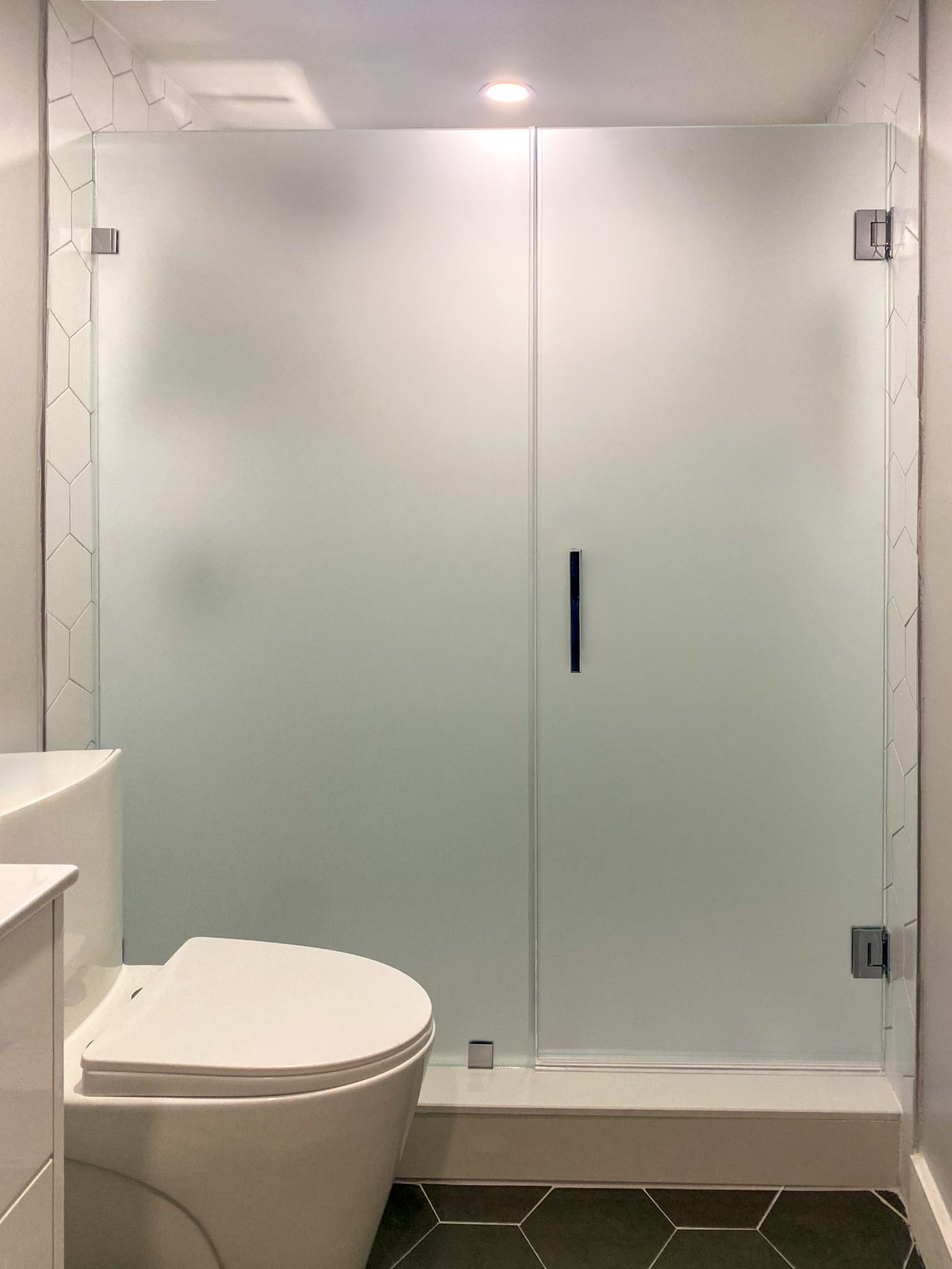 - Muốn che bớt khu vực bên trong cabin tắm: Kính mờ giúp ẩn đi các chi tiết như vòi sen, kệ để đồ hoặc vết nước, tạo cảm giác gọn gàng và sạch sẽ hơn cho không gian tổng thể.